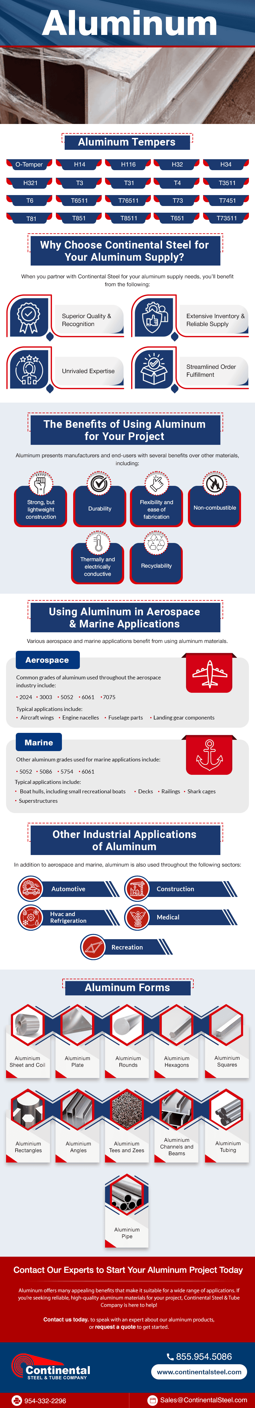 Aluminum offers many appealing benefits that make it suitable for a wide range of applications. If you’re seeking reliable, high-quality aluminum materials for your project, Continental Steel & Tube Company is here to help!